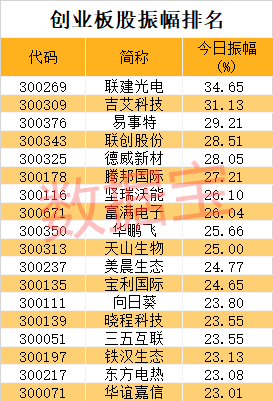2只创业板股振幅超30%