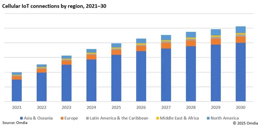 Omdia:预计全球蜂窝物联网连接数将在2030年达到51亿