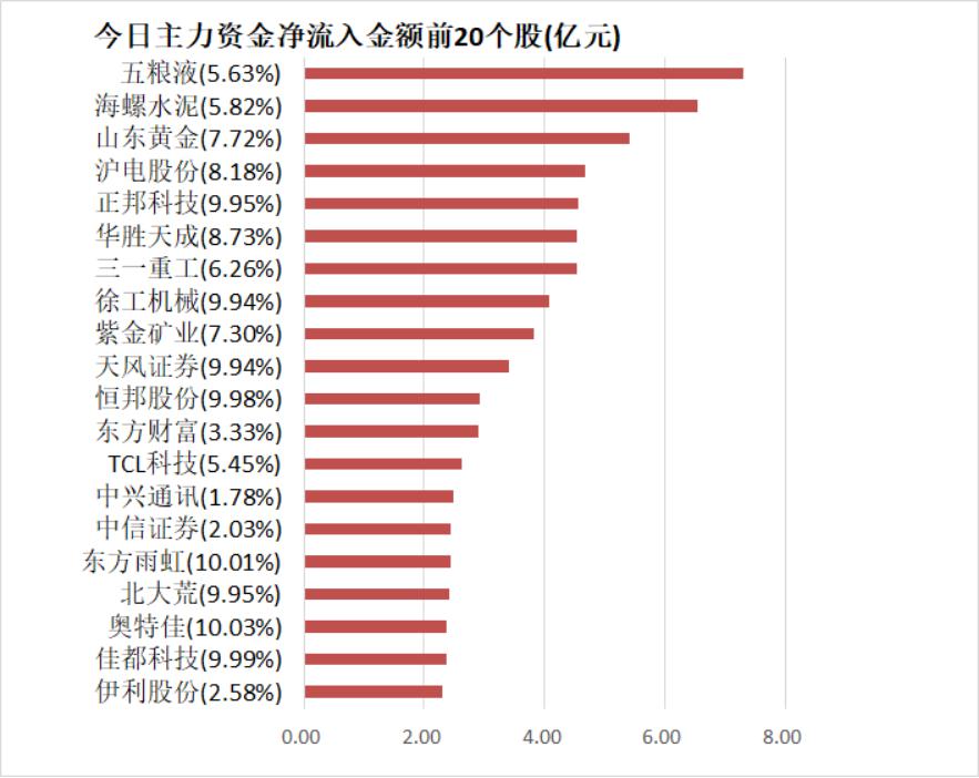今日沪深两市主力资金开盘净流入117.77亿元,尾盘净流入40.96亿元,两市全天资金净流入256.19亿元。