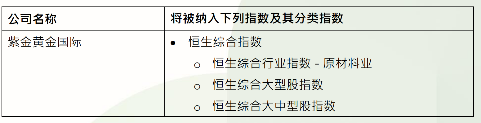 紫金黄金国际(02259)获纳入恒生综合指数 10月16日起生效