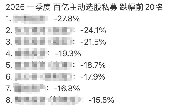 近日,一张“百亿主动选股私募一季度跌幅前二十”的榜单在业内传开。