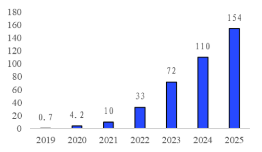 根据Sigmaintell预测,2019年全球可折叠智能手机的销售量约70万部。而随着折叠屏成本的快速下降,预计2020年全球可折叠智能终端的销售量约400万部,同比增长约为519%,行业迎来爆发式增长。而到2025年,这一数字将增长至1.5亿部。