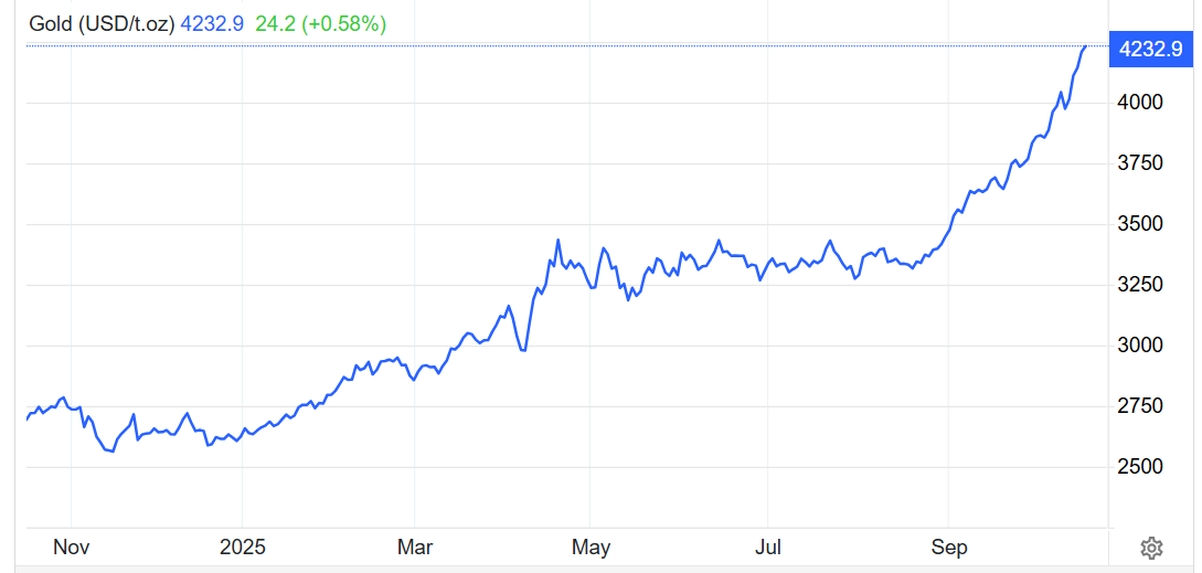 对于钟情于黄金的投资者们来说,美国政府停摆带来的巨大潜在损失,对于今年以来狂飙超60%跑赢MSCI全球股市基准指数且屡创历史新高的黄金价格来说无疑是重大积极催化。