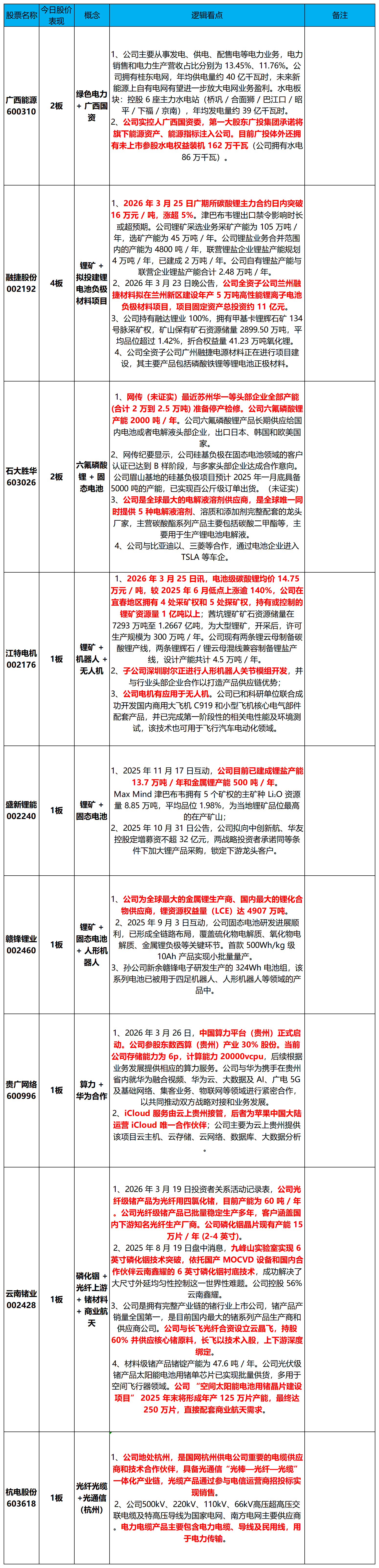 江特电机002176、盛新锂能002240、赣锋锂业002460、贵广网络600996、云南锗业002428、杭电股份603618、