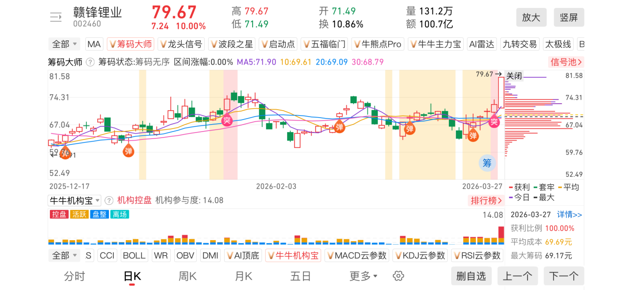 2)20260327-赣锋锂业-002460-【筹码大师】和【牛牛机构宝】-近期出现弹信号且底部量柱由绿转红