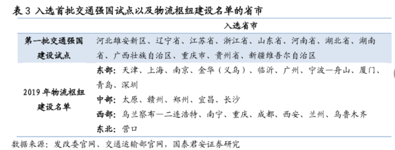 事件:12月2日盘后,交通运输部发布关于开展交通强国建设试点工作的通知。通知指出,拟通过1~2年时间,取得试点任务的阶段性成果,用3~5年时间取得相对完善的系统性成果,培育若干在交通强国建设中具有引领示范作用的试点项目,形成一批可复制、可推广的先进经验和典型成果,出台一批政策规划、标准规范等,进一步完善体制机制,培养一批高素质专业化的交通人才,在交通强国建设试点领域实现率先突破。