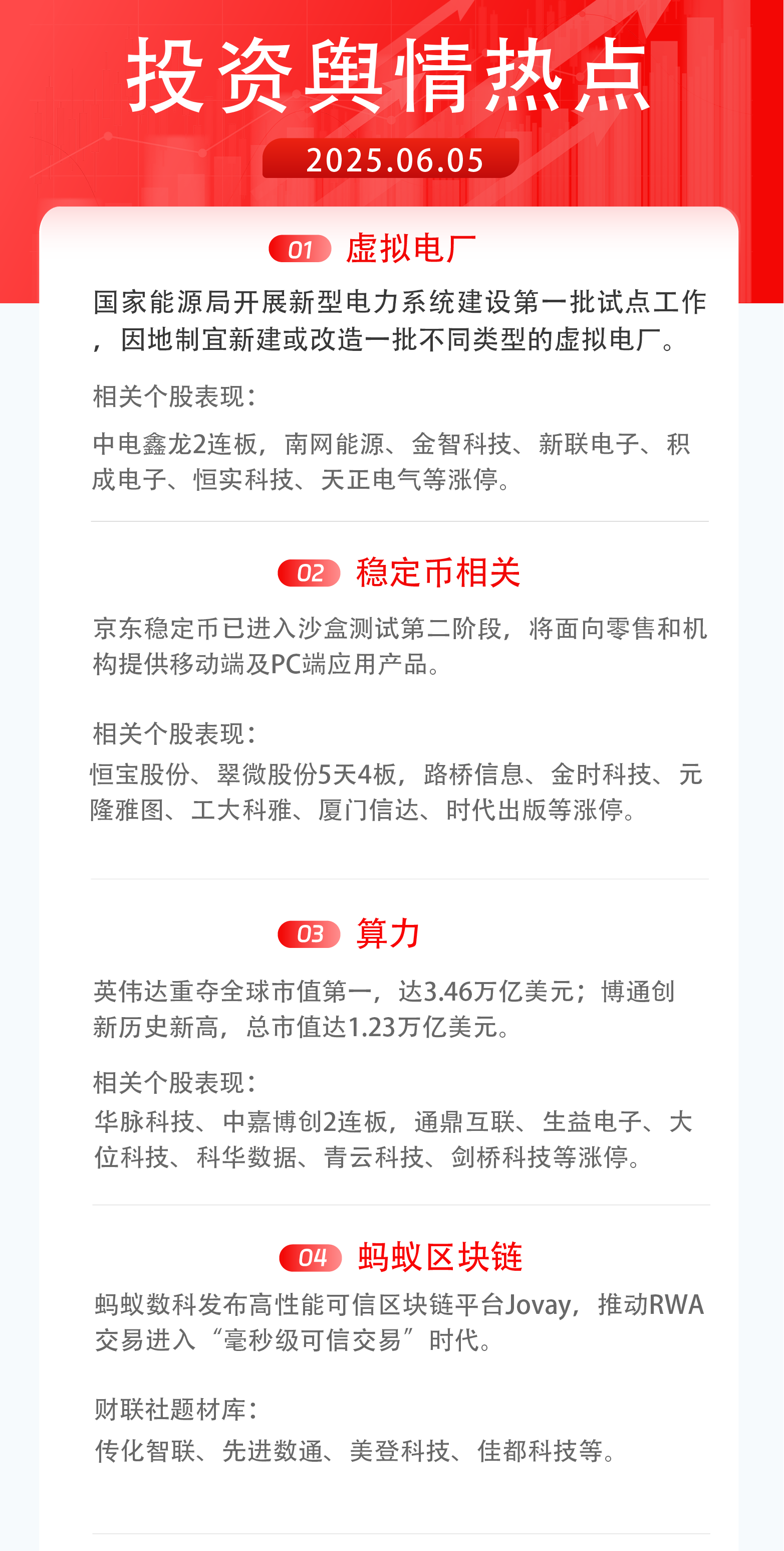 6月5日舆情热点:虚拟电厂、稳定币、算力