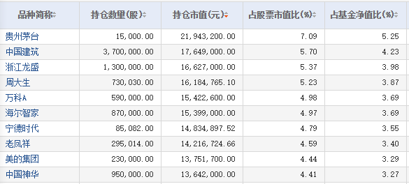 截至二季度末 安信价值发现两年定开前十大重仓股