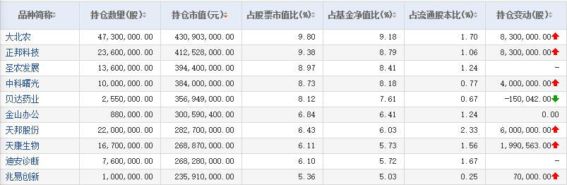 从银华内需精选二季度前十大重仓股来看,二季度延续一季度操作策略,继续加仓大北农、正邦科技、中科曙光、天邦股份、天康生物、兆易创新等,持仓情况变化不大。