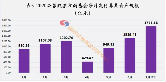 银河证券基金研究中心数据显示,截至7月17日,7月份新发股票方向基金30只,募集资金1773.68亿元,今年以来新发股票方向基金334只,募集资金7702.36亿元,已超过2015年全年的7691亿元。