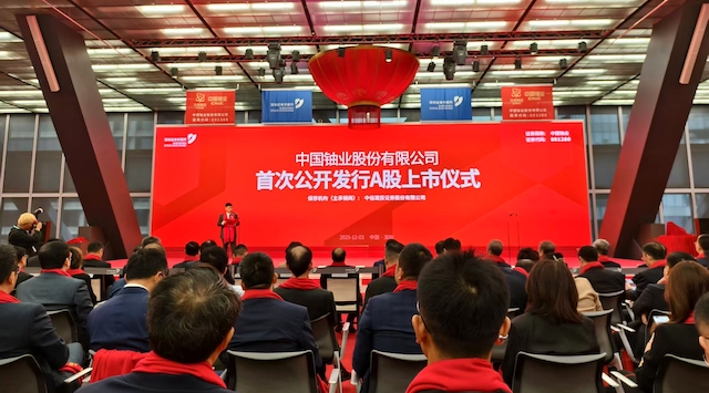 12月3日,中国铀业股份有限公司正式登陆深圳证券交易所主板,股票代码为001280。