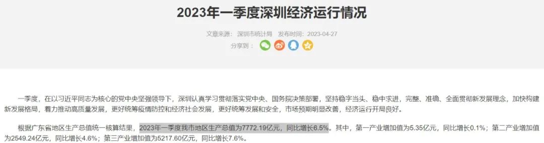 排名第三的深圳,2023年一季度GDP达7772.19亿元,相比上海、北京的差距均超2000亿元,但是相比广州的6963.92亿元又有一定优势。