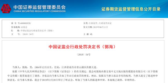 而在上一轮牛市中,中文传媒股价最高达到36.46元,相比郭海最早介入的成本价,如果期间没有大量卖出的话,其持股的投资收益将高达4倍以上。而据披露的处罚书显示,在内幕交易中文传媒股票后,郭海最终获利5875.17万元。