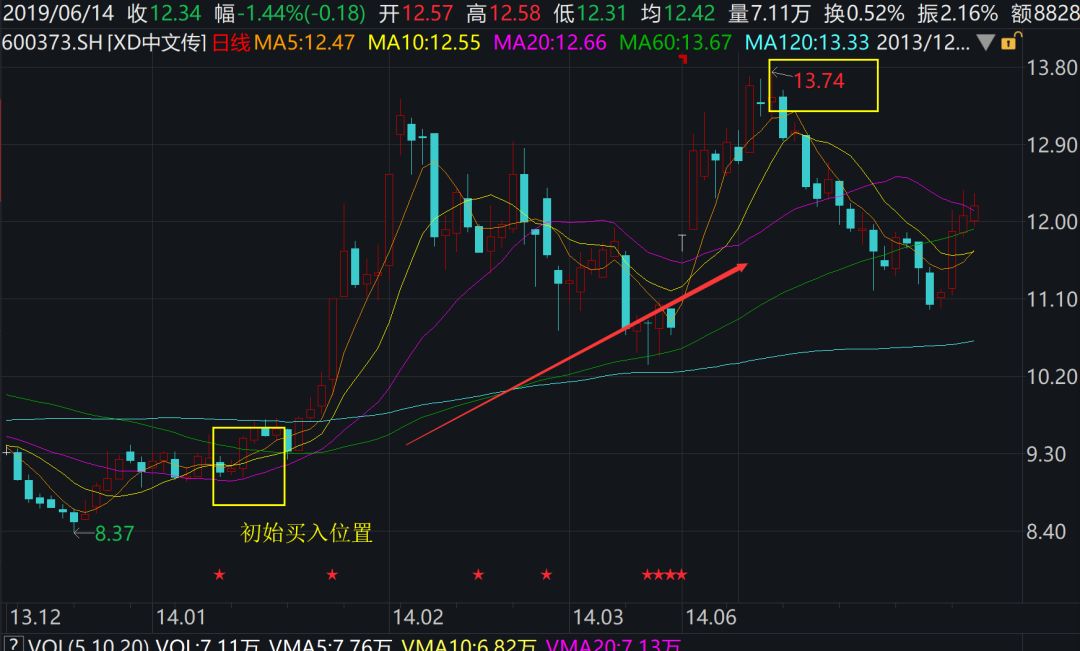 在获取相关内幕交易后,郭海便操作其控制的账户进行集中买入并获取丰厚利润。从当时中文传媒的股价走势看,2014年1月13日(即郭海最早大笔买进时点 ),中文传媒开盘价为9.08元,2014年6月24日正式复牌后当天一字涨停,7月4日股价冲至短期高点13.44元,期间涨幅接近50%以上。