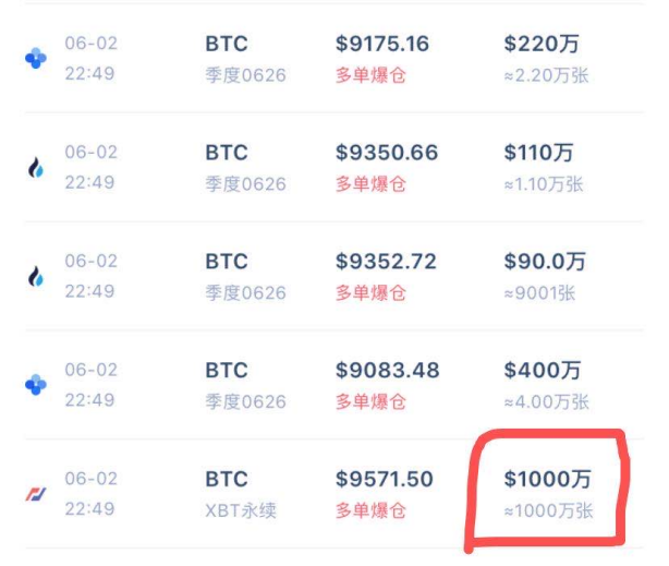 昨夜22:49左右的比特币价格大跌更是一下子“埋”了许多人,其中一单的爆仓金额高达1000万美金。