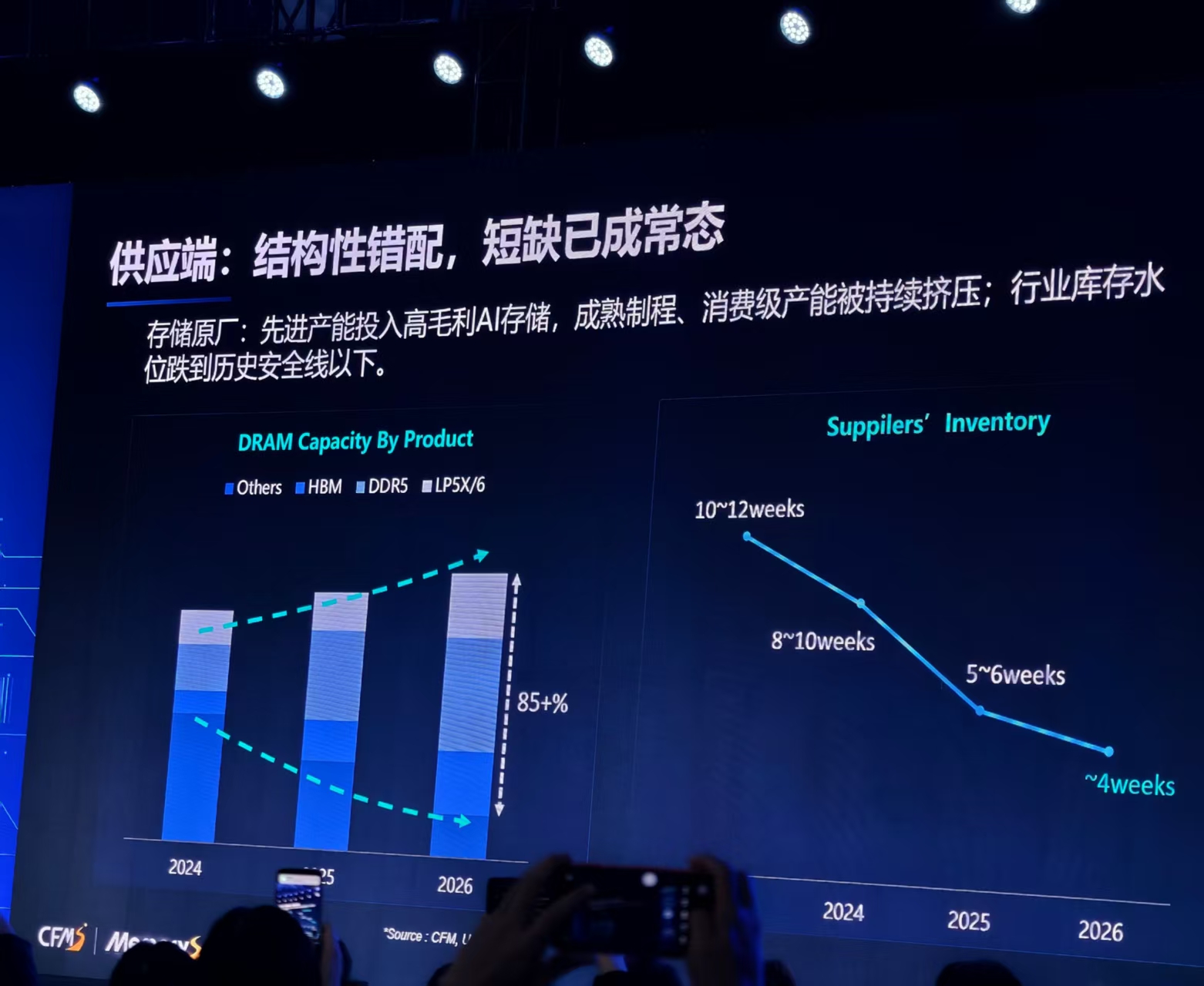 邰炜表示,由于存储产能扩张周期长达18至24个月,“供应短缺短期内难以缓解,结构性错配已成为常态”,厂商正优先将产能投向利润更高的AI相关产品,消费类产品的产能受到挤压,行业库存已降至较低水平。