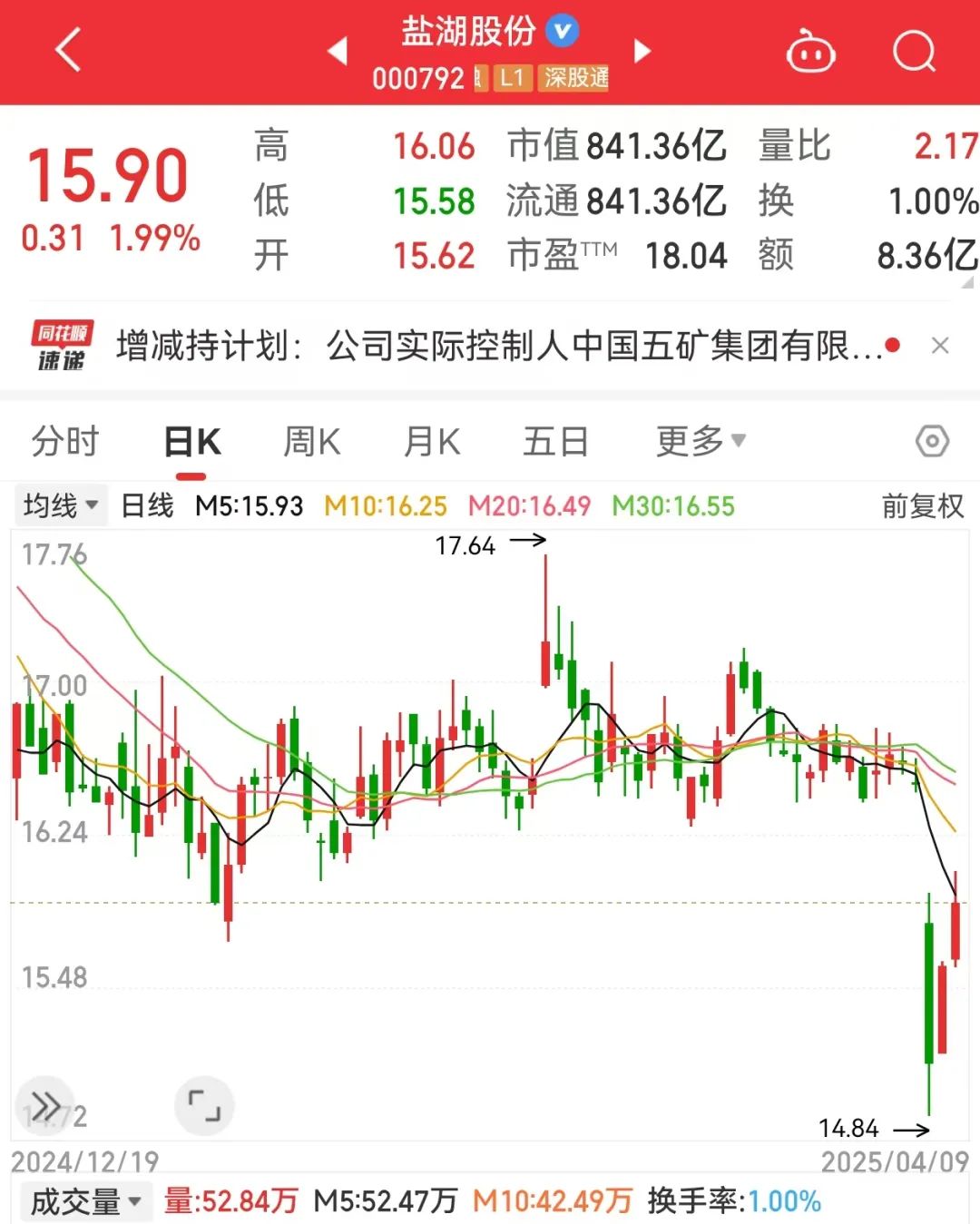 又一家央企控股股东宣布大幅增持。盐湖股份4月9日早间公告,公司实际控制人中国五矿集团有限公司(简称“中国五矿”)基于对公司未来持续稳定发展的信心和长期投资价值的认可,为增强投资者信心,计划自公告之日起6个月内,通过深交所系统允许的方式(包括但不限于大宗交易和集中竞价交易)增持公司A股股票。本次计划增持股份总数量不少于2.12亿股。本次增持计划不设置固定价格区间,中国五矿将基于对公司股票价值的合理判断,择机实施增持计划。
