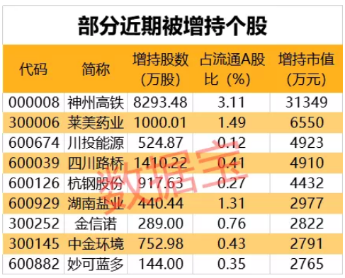 截至2月4日,近十个交易日有24家上市公司被增持,增持股数合计1.47亿股,增持市值达6.90亿元(增持股份变动以公告中变动截止日为准)。其中神州高铁被增持的股数最多,达8293.48万股,占流通A股比例为3.11%,增持市值达3.13亿元。