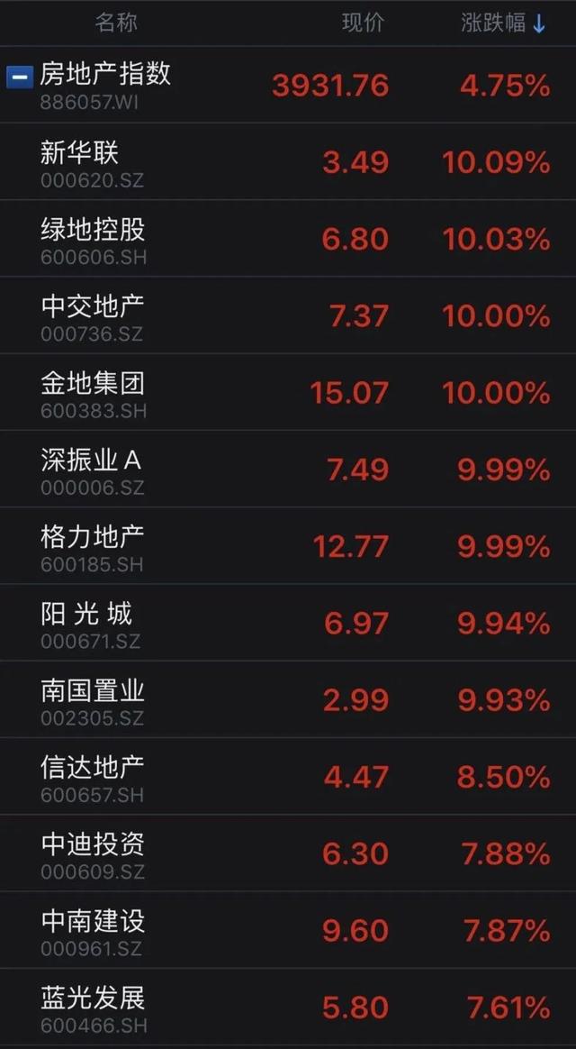 房地产板块中,新华联、绿地控股、中交地产、金地集团、深振业A、格力地产、阳光城、南国置业等多股涨停。
