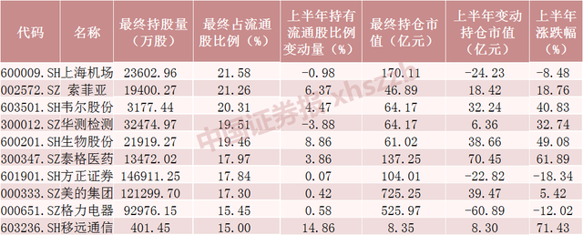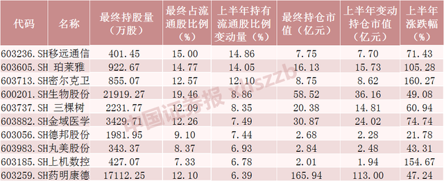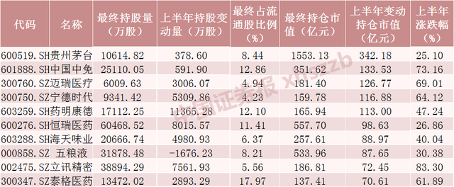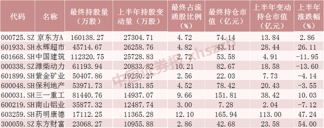 在上半年中,除重仓股多数被加仓外,还有哪些个股获得北向资金的明显加仓?