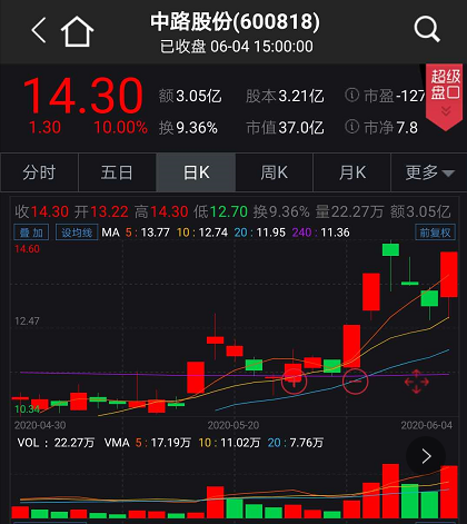 生产经营“永久牌”自行车的中路股份也在尾盘涨停,收报14.30元/股。