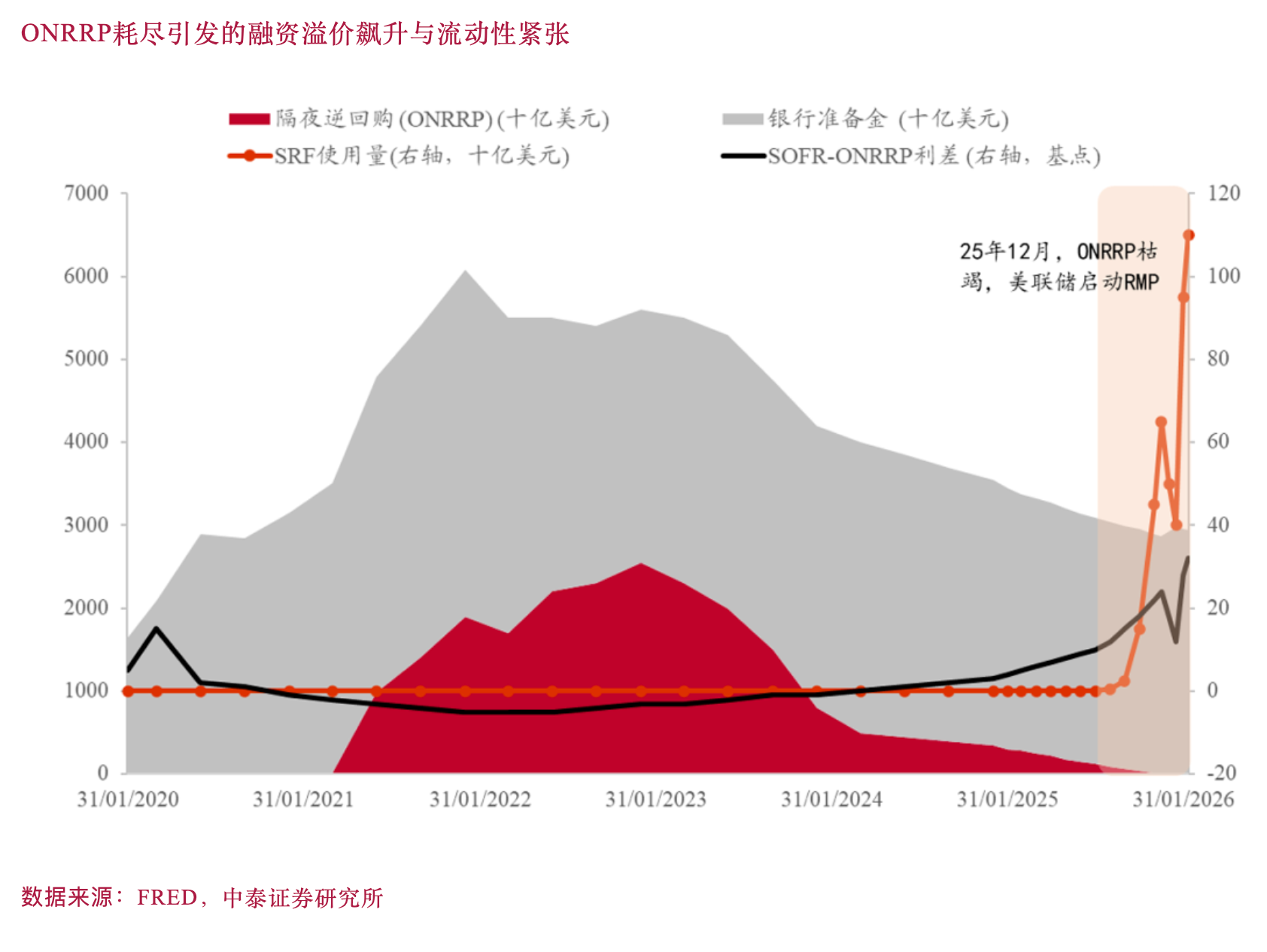 正因如此,美联储去年12月启动RMP(储备管理购买)改善流动性。如果强行缩表,大概率重演2019年9月回购市场危机(当时隔夜回购利率飙升至10%,迫使联储紧急重启回购并扩表)。