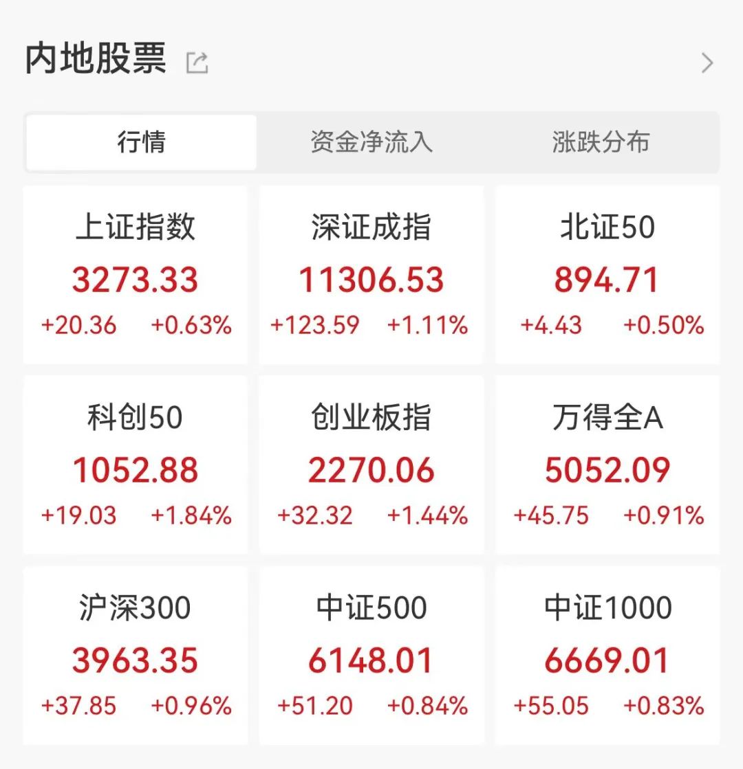6月16日,三大指数集体高开高走。沪指收涨0.63%,报3273.33点,向上冲击60日均线;深证成指、创业板指双双涨逾1%,幅度分别为1.11%、1.44%。其中,深成指已连续7日收阳,累计上涨5.58%。