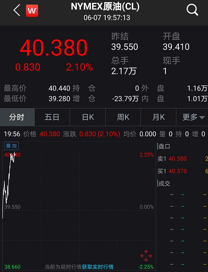 国际原油市场在最近一个交易日继续大幅反弹,WTI原油主力7月合约上涨4.39%报38.97美元/桶;布伦特原油主力8月合约涨幅更是高达5.47%,升至42.07美元/桶。