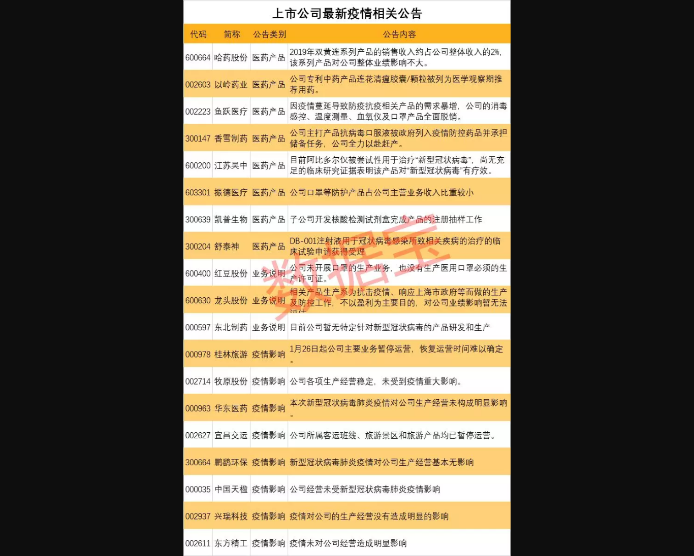 鼠年首个交易日A股重挫,千股跌停再次上演。昨日晚间,部分上市公司针对产品突破及疫情影响火速发布公告。