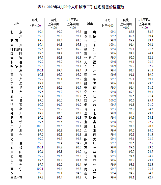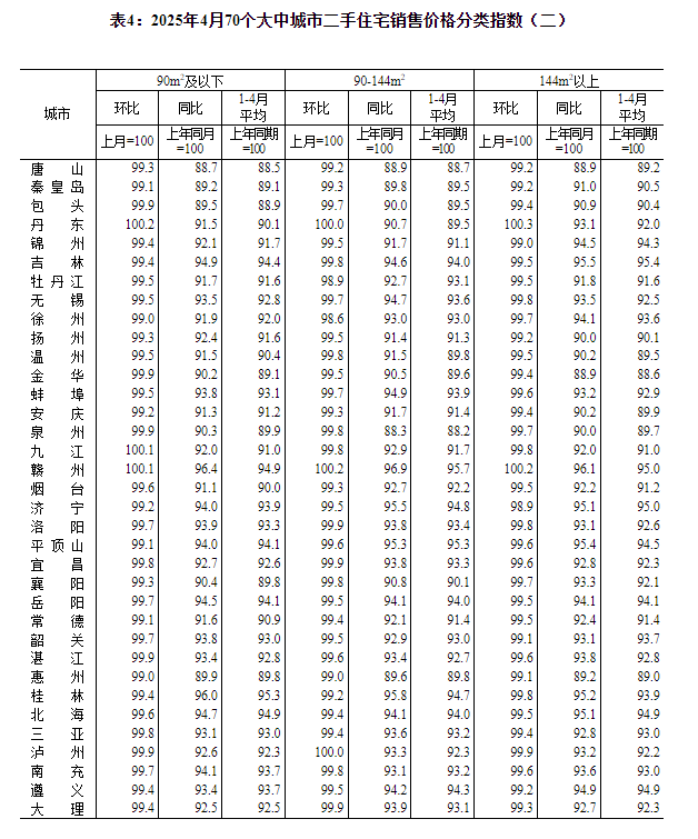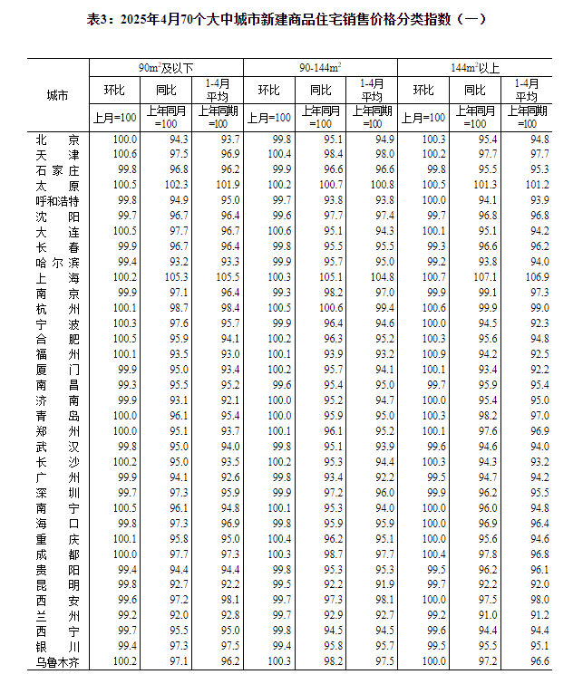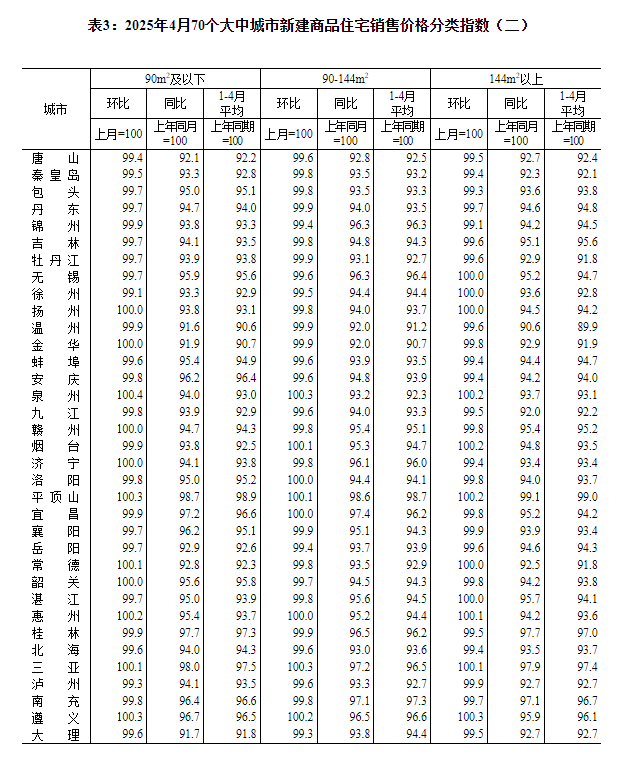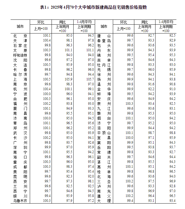 国家统计局城市司首席统计师王中华就2025年4月份商品住宅销售价格变动情况统计数据进行了解读。