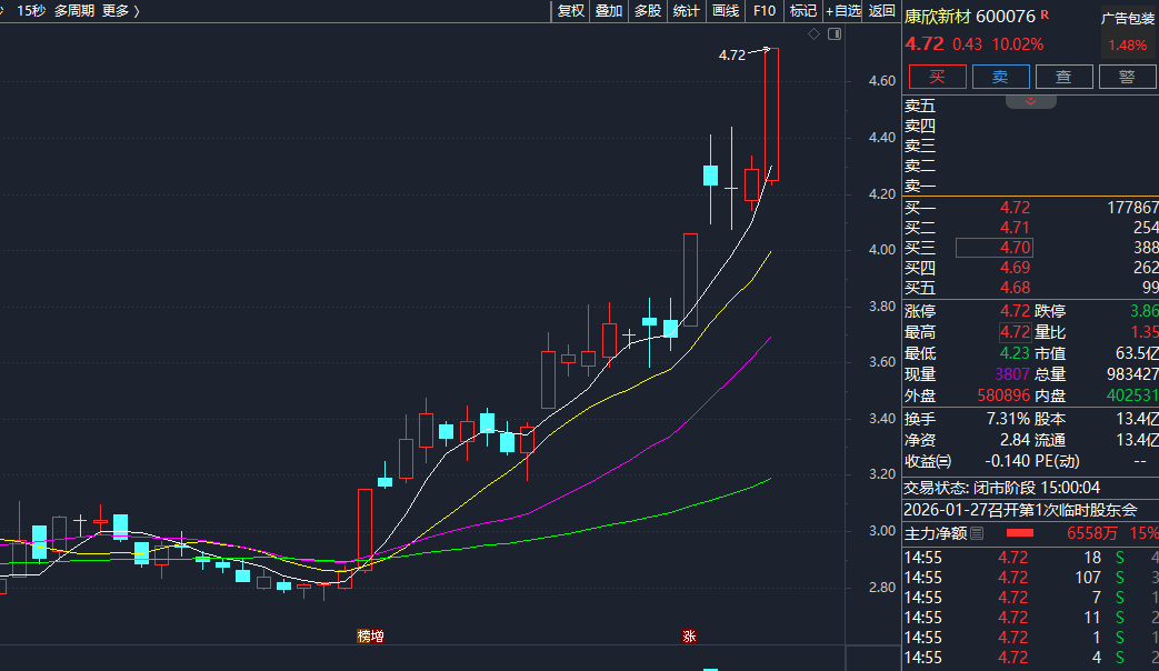 当日,康欣新材股价逆市大涨,尾盘时封死涨停板,总市值攀升至63亿元。其实,二级市场上,康欣新材是一只大“牛股”。从去年4月9日开始,该公司股价累计涨幅已超150%。