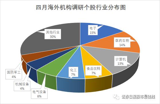 行业方面,上述被海外机构调研的92只个股主要扎堆在电子、医药生物、计算机、食品饮料、化工等五大行业,涉及个股数量分别为14只、13只、12只、6只和6只。