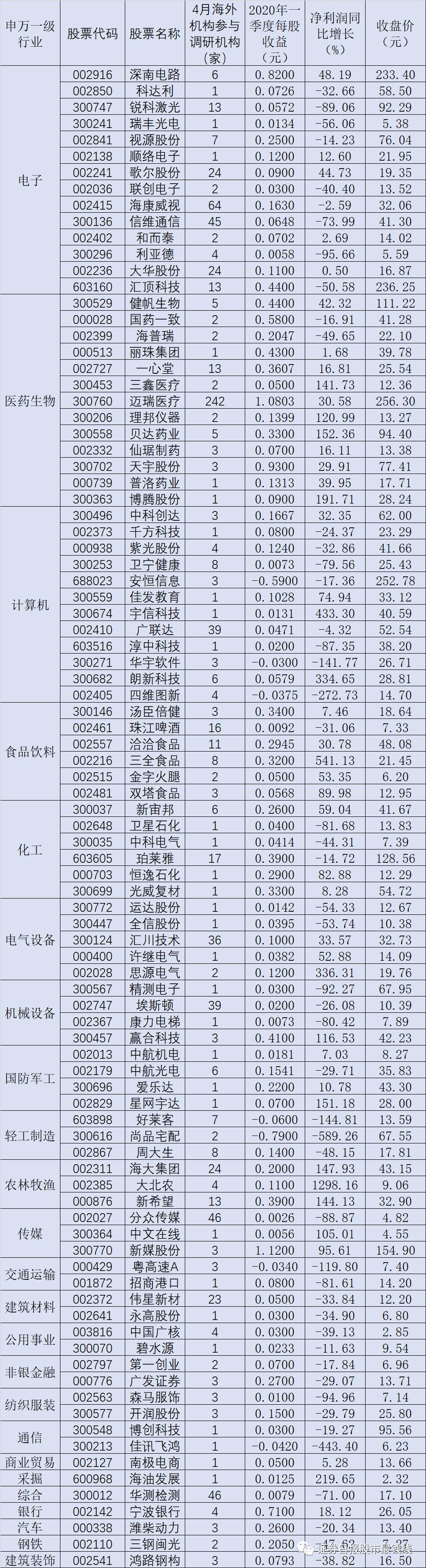 进一步统计发现,有92家公司在4月份被海外机构集密调研,其中,迈瑞医疗、海康威视、分众传媒、华测检测、信维通信(300136)、广联达、埃斯顿(002747)和汇川技术等8家公司期间均受到30家以上海外机构联袂调研,大华股份、歌尔股份、海大集团、伟星新材(002372)、珀莱雅、珠江啤酒(002461)、汇顶科技(603160)、一心堂(002727)、新希望、锐科激光(300747)、洽洽食品等11家公司期间也获得超10家海外机构集中调研,彰显出海外机构高研热情回升。