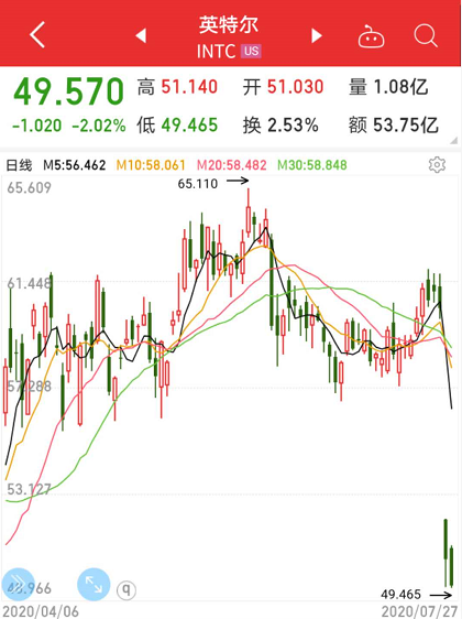 上周五世界芯片巨头英特尔美股遭遇重挫,暴跌16.24%,市值一夜蒸发415亿美元,台积电却是另一番风光。台积电当晚大涨9.69%,市值飙升338亿美元,总市值达3833亿美元。这两天英特尔股价大跌,台积电和英特尔的老对手AMD同步大涨,AMD的封测芯片厂通富微电昨天收获涨停板。