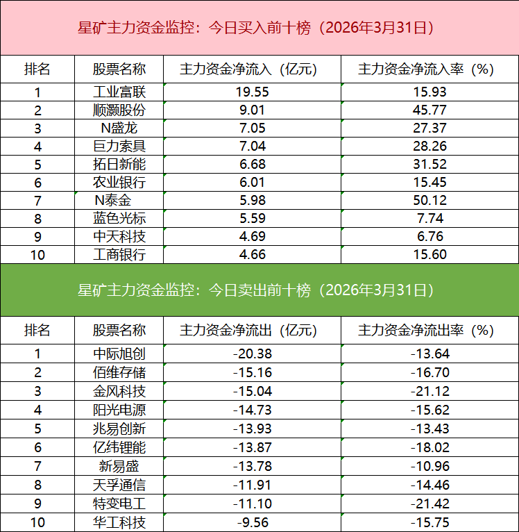 从个股主力资金监控数据来看,主力资金净流入前十的个股所属板块较为分散,工业富联净流入居首。