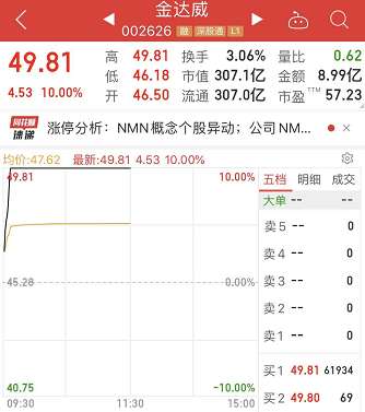 金达威受到追捧的背后,NMN引人关注。同花顺NMN概念指数早盘上涨了2.5%,本周累计上涨9.59%。丰原药业早盘涨停,雅本化学上涨5.1%,兄弟科技涨3.03%。