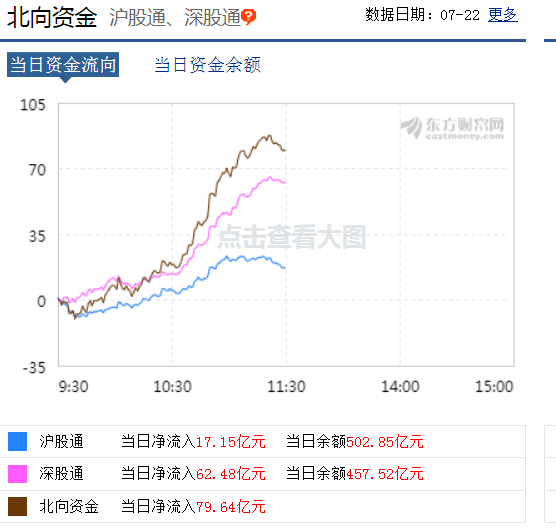 今天是修订后的上证指数亮相首日,两市继续回暖。上证指数早盘收涨1.2%,深证成指和创业板指分别上涨1.62%和1.91%,北上资金半日净流入近80亿元。国防军工、休闲服务电子行业领涨两市。