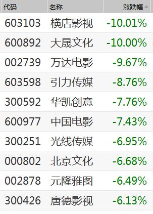 文化传媒板块方面,院线股出现大跌,横店影视跌停,万达电影逼近跌停。