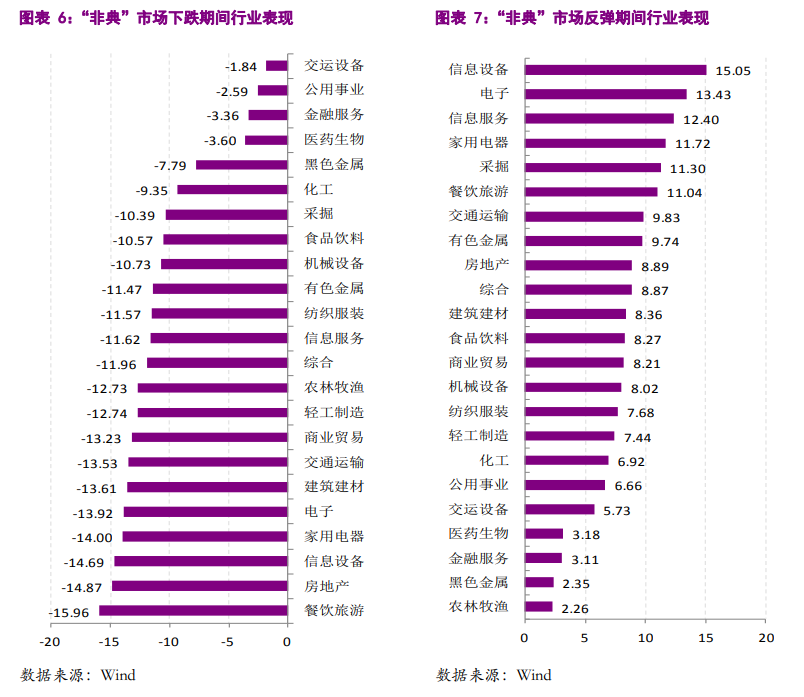 在2003年的SARS集中爆发期间,医药生物行业表现靠前,而餐饮旅游、交通运输等行业表现靠后;在疫情得到控制而市场出现反弹的阶段,医药生物表现靠后,而餐饮旅游和交通运输行业表现靠前。