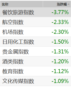 在毫无征兆的情况下,民航、酒店、影院等今日早盘全线下挫。Wind统计的餐饮旅游指数大跌3.77%,航空、机场等交通运输板块大跌逾2%,文化传媒板块内的影视股大跌。