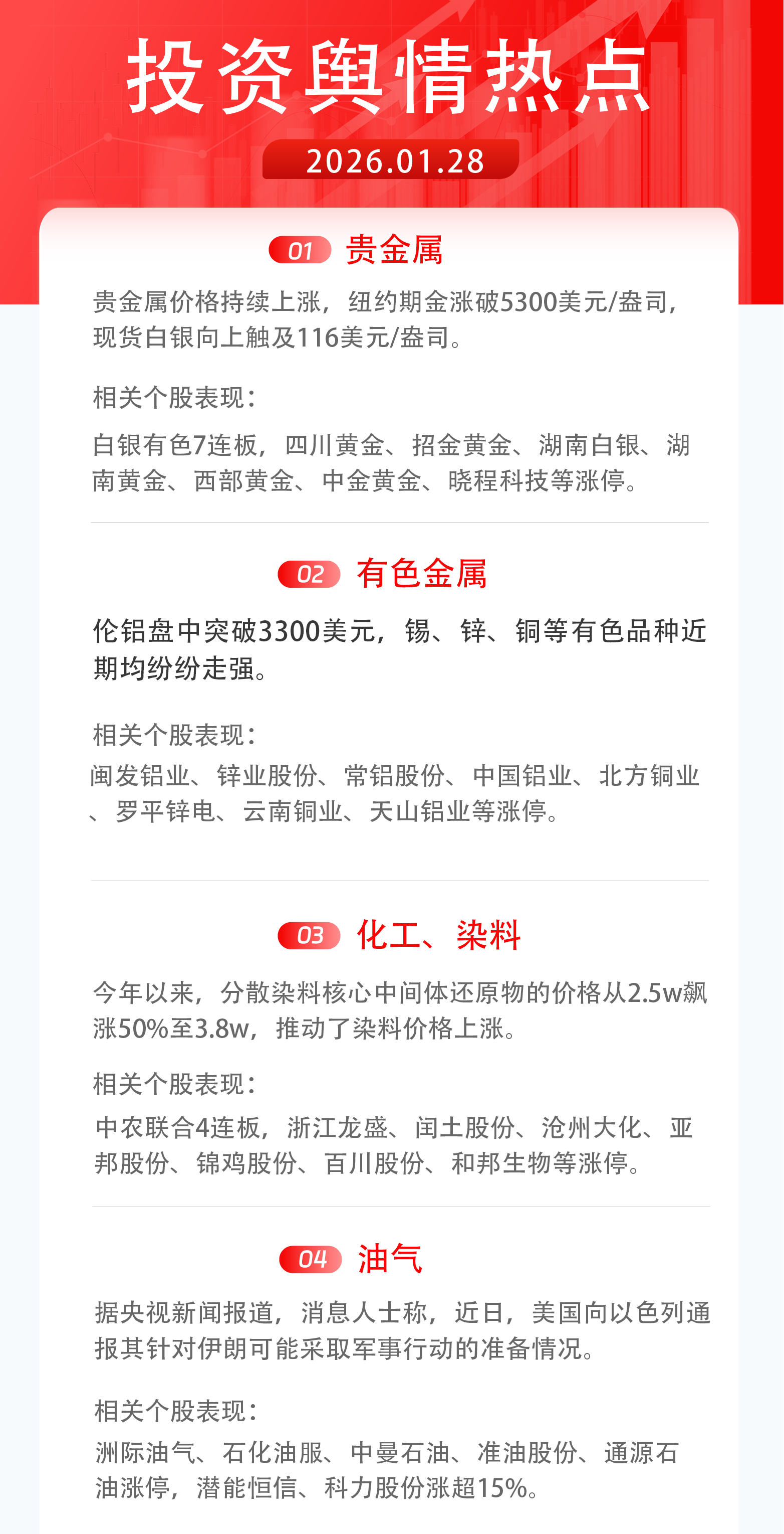 1月28日舆情热点:有色金属、化工、油气
