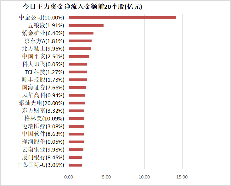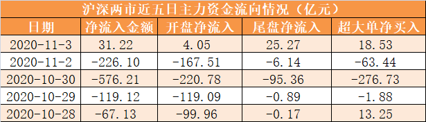 今日沪深两市主力资金开盘净流入4.05亿元,尾盘净流入25.27亿元,两市全天资金净流入31.22亿元。