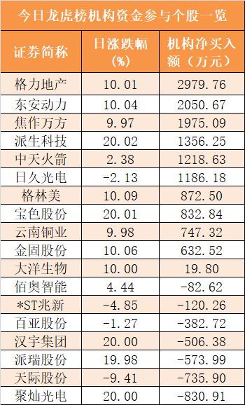 盘后龙虎榜数据显示,机构现身18股,其中格力地产等11股呈现机构资金净买入,聚灿光电等7股呈现机构资金净卖出。