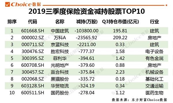 减持公司中,建筑和房地产行业的公司处于抛售前列,三季度中国建筑被安邦人寿-保守型投资组合减持超10亿股,万科A被安邦人寿和前海人寿旗下产品累计减持2.36亿股。