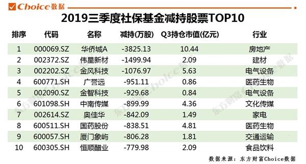 华侨城A、伟星新材金风科技处于社保基金抛售前列。