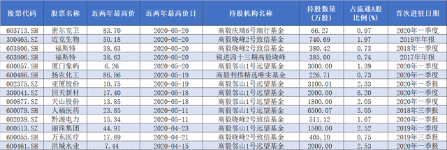 另外,“高毅晓峰2号致信基金”截至今年一季度末持有的黔源电力以及万东医疗分别于今年5月11日和4月21日刷新了近两年来的新高。