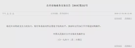 因银行体系流动性总量处于较高水平,央行索性停了逆回购操作。不少市场机构认为,明年1月央行有较大可能性实施降准。