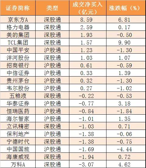 7、今日沪股通和深股通前十大活跃股