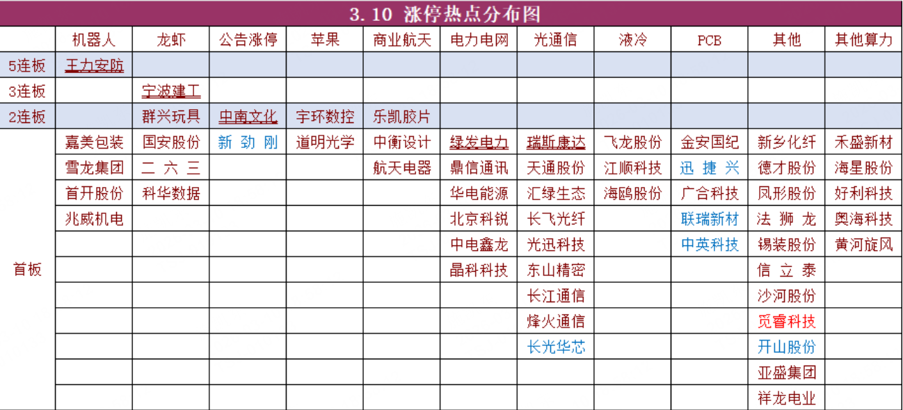 海外链英伟达GTC方向,领涨的还是那一批,都是老朋友,前面盘前锦囊也都讲过了!光模块的天孚通信,汇绿生态,液冷的飞龙股份,散热的黄河旋风,光纤的长飞光纤,PCB的金安国纪,东山精密等等,每个分支方向都有轮动且都有几个涨停锚定,而且还都是第一周炒过的,由于外围冲突影响而导致的下跌调整,强势的调整了7天一天就新高了,不过这种现有连板走法,更多的是趋势性的!昨天跌已久的机器人也有反弹动作!