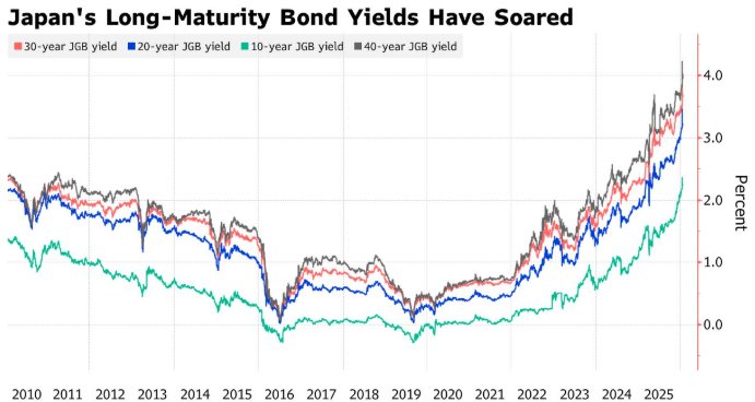 交易员警惕日本债券市场周三再次崩盘的风险,届时日本政府将发行40年期日本国债,最近的市场表现证明,这种期限的债券很容易出现剧烈波动。此次拍卖发生在日本国债收益率飙升至历史新高约一周之后,此前日本首相高市早苗宣布计划取消食品消费税两年。40年期日本国债收益率上周二飙升超过25个基点,创下推出以来的最高水平。